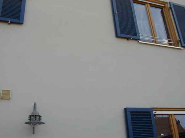 Putzrisse mit Breiten von rd. 0,1 mm entsprechend den Lagerfugen des Mauerwerks und teils auch an den Stossfugen. Im Bereich Sockelputz treten Risse verstärkt auf. Das Gebäude wurde im Jahr 2000 errichtet, die Risse wurden 2001 bemerkt.